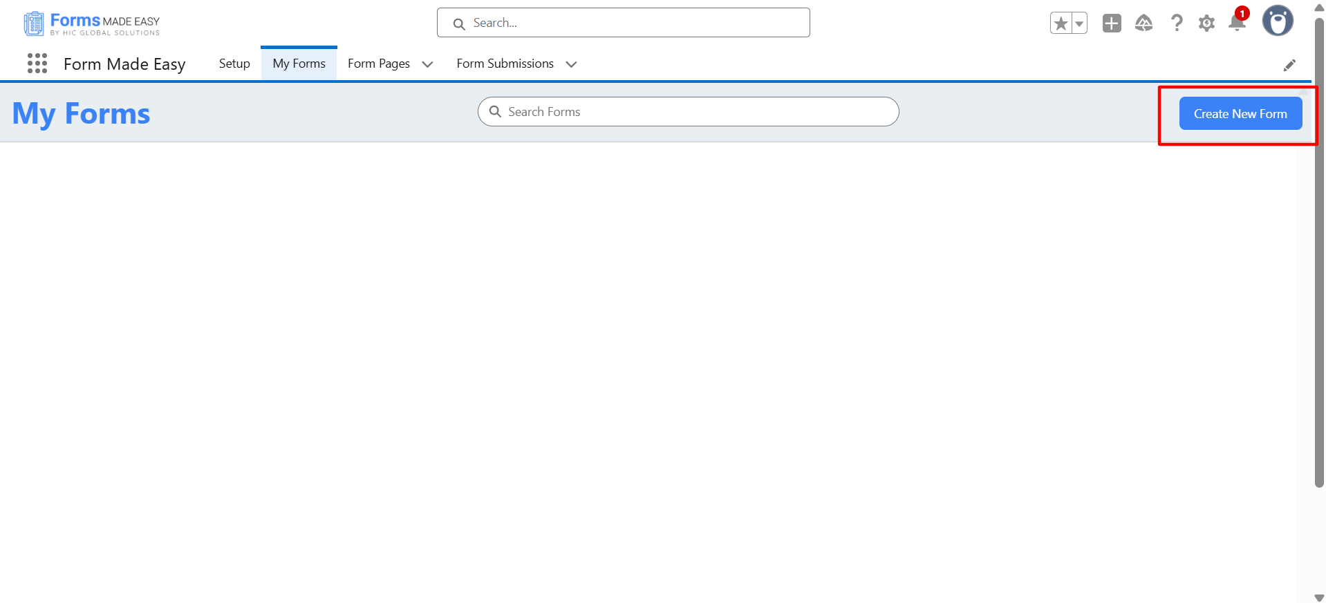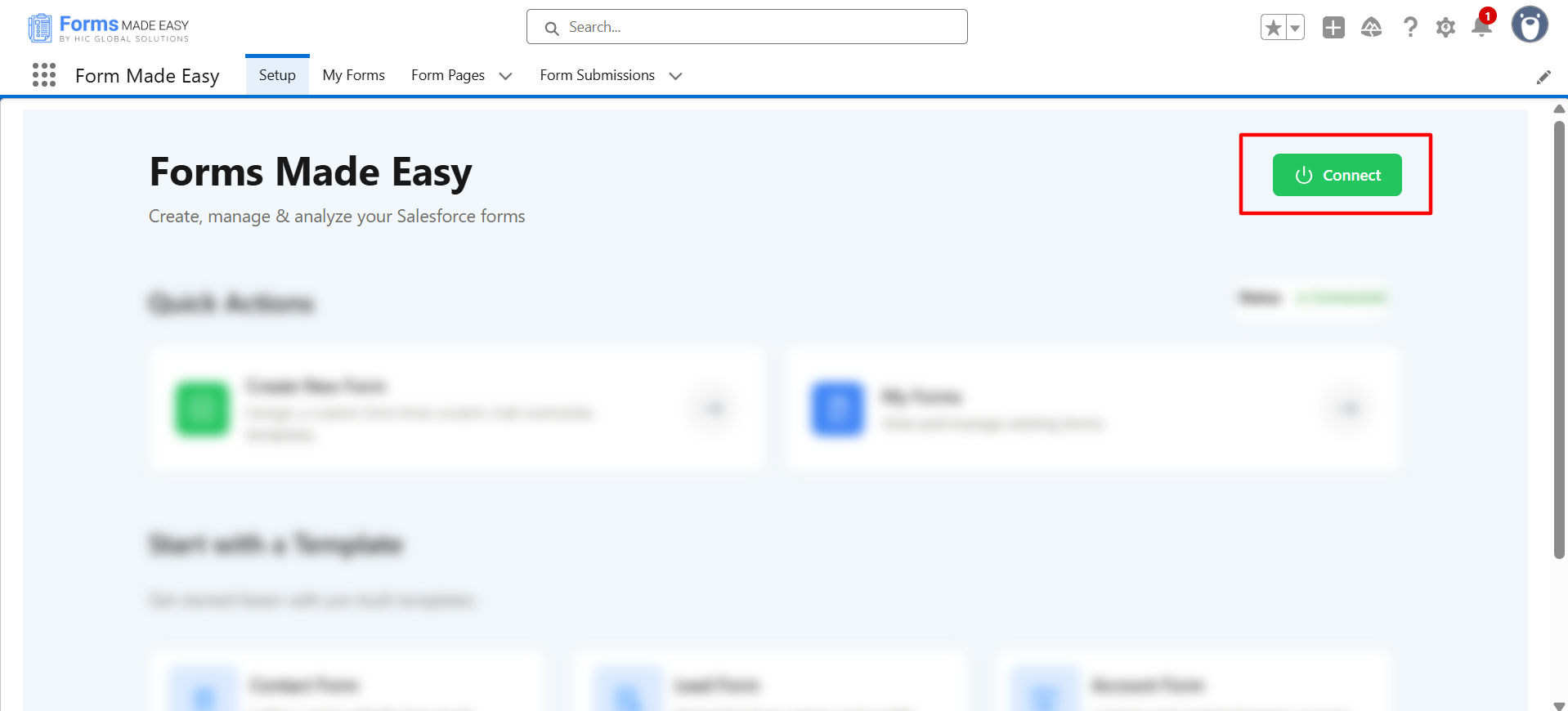 After installing the Forms Made Easy app, you will be redirected to the app’s ‘Setup’ page