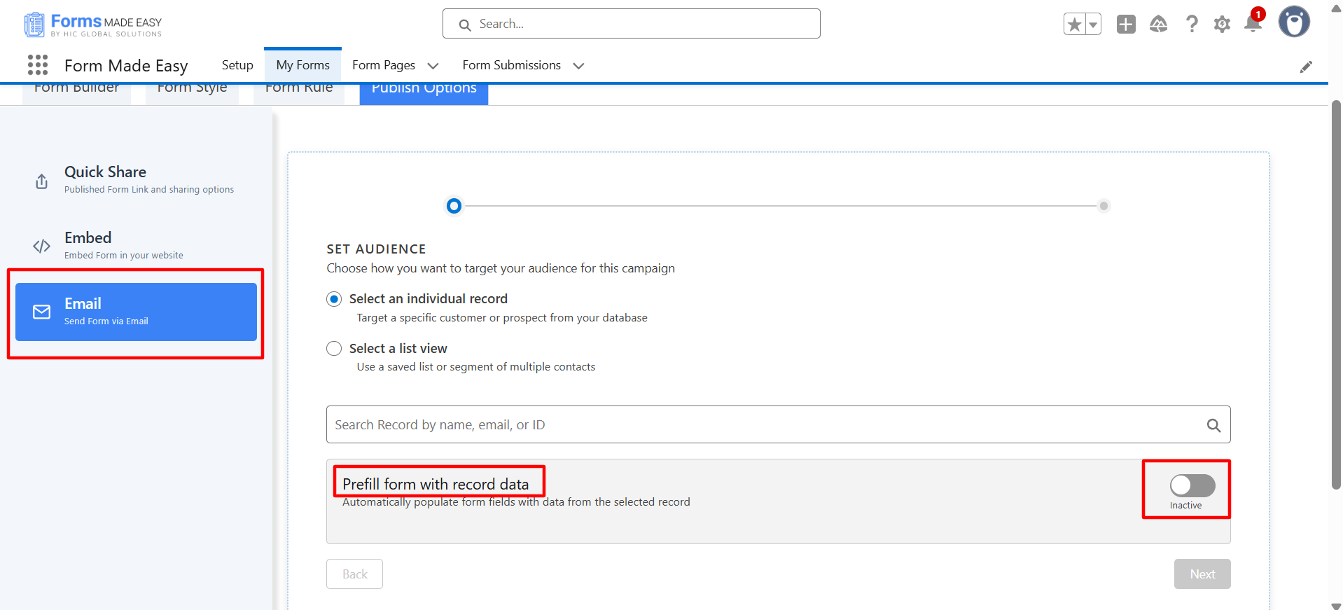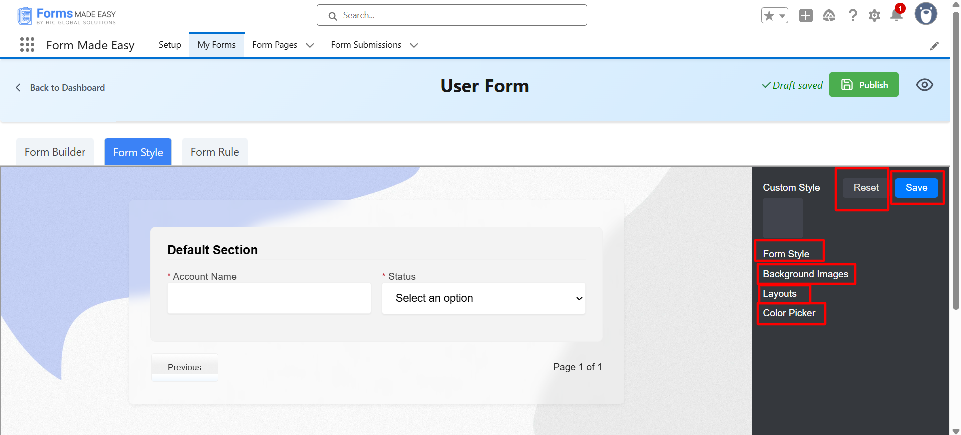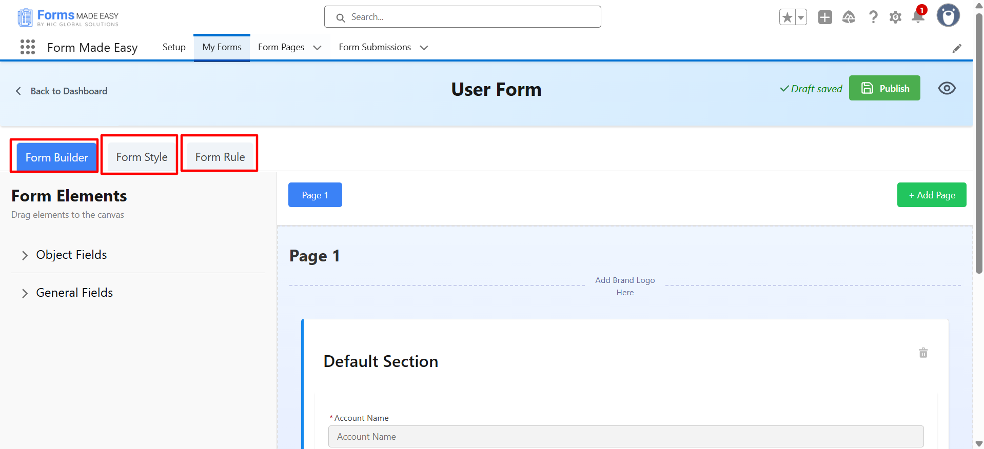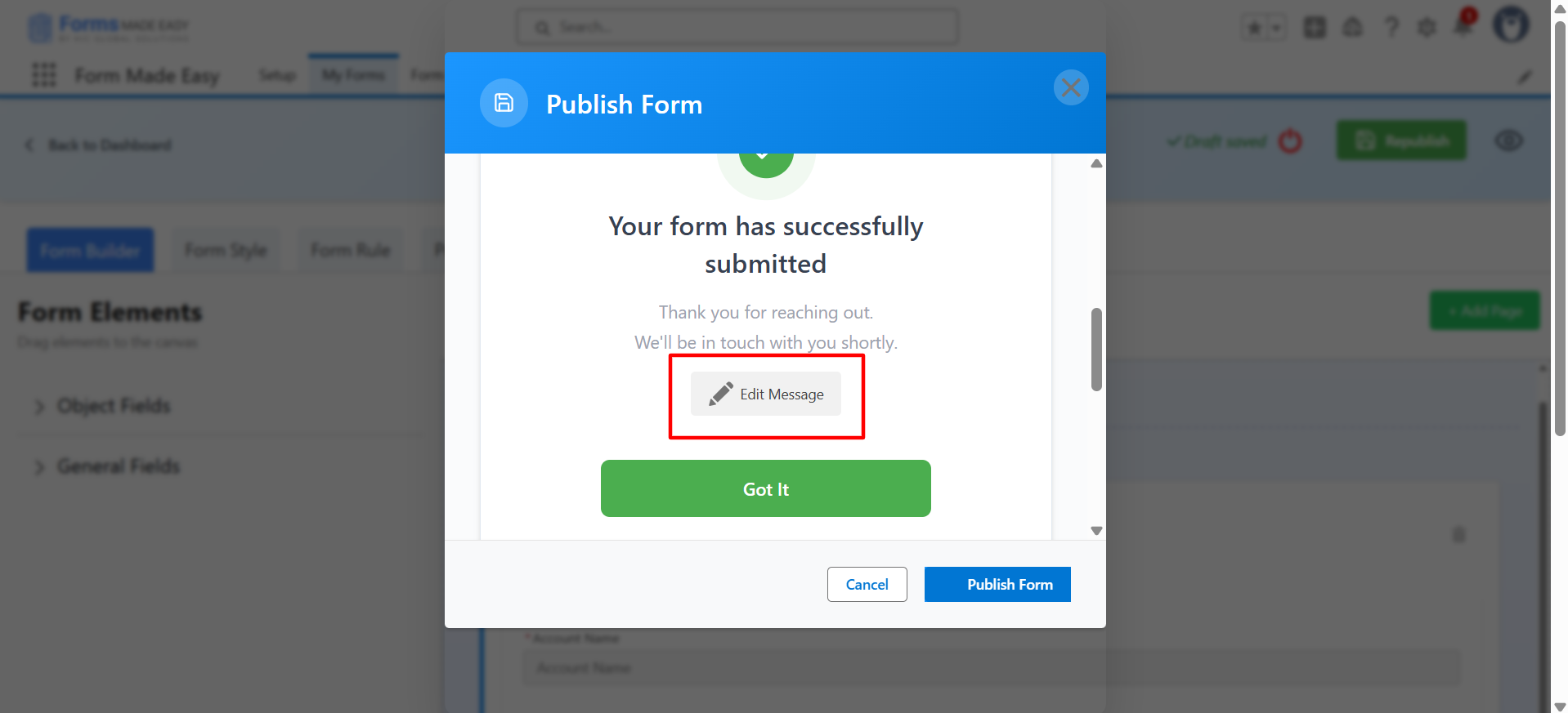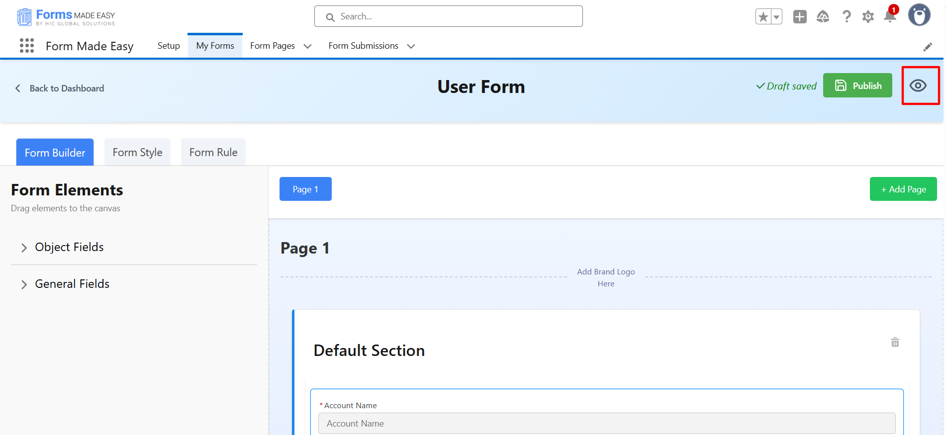 Preview Form: Preview the form before publishing so that you can see how the form will be displayed to other users.