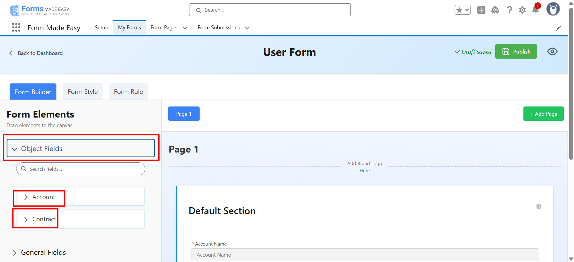 Object Fields: This option helps to drag & drop the object fields. Another option is to make a field required or optional.