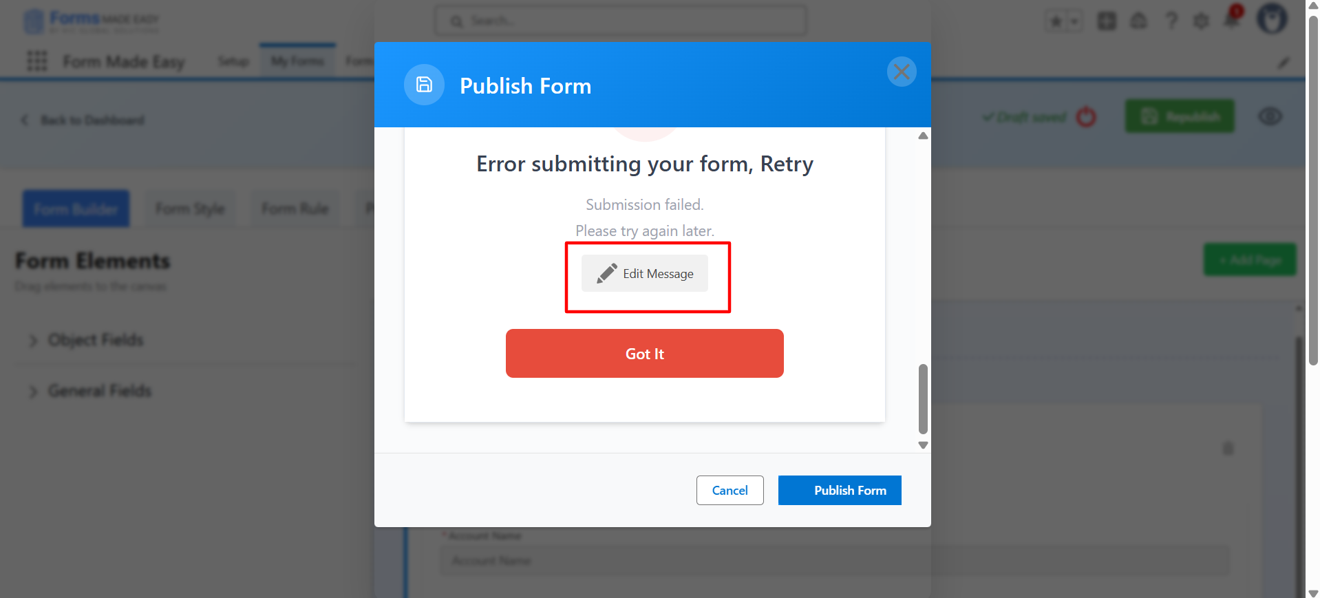 Note: You can also customize the ‘Thank You & Error Page’ message.