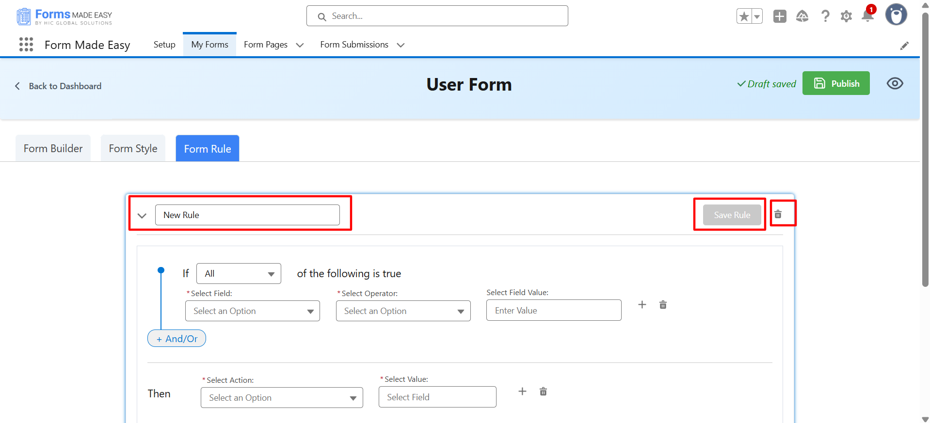 c. Form Rule: You can apply the rule for using And/Or functionality and apply multiple conditions.