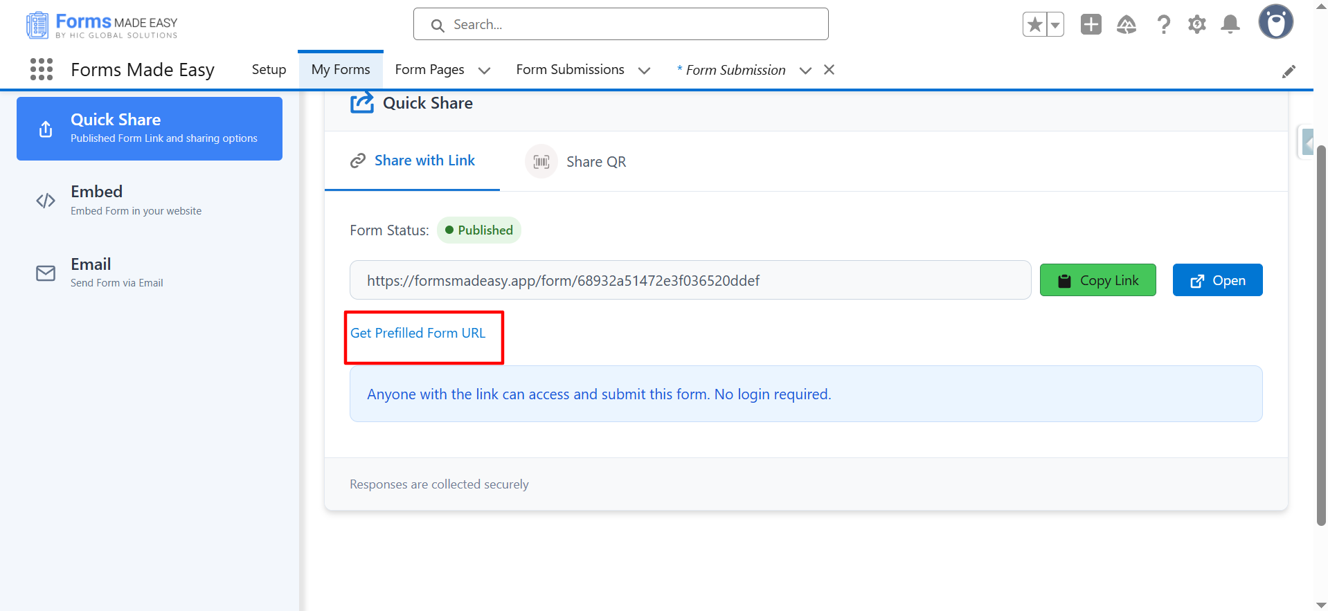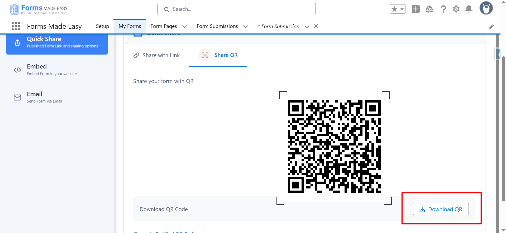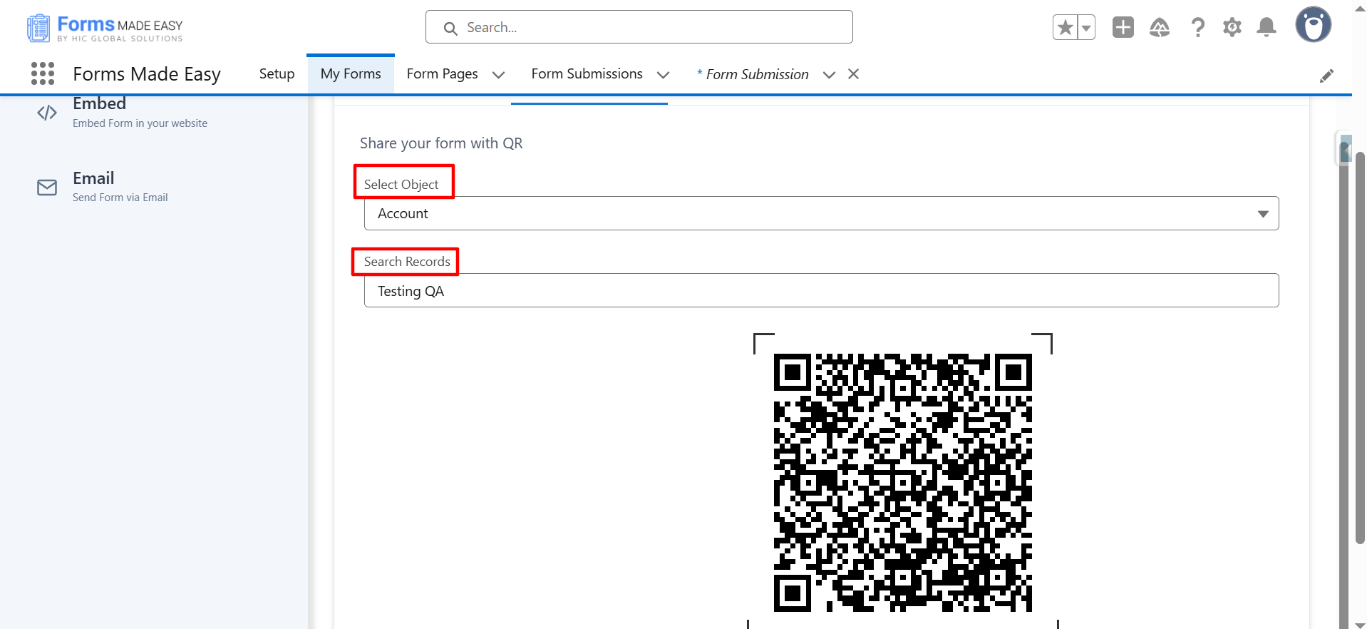 Choose your Salesforce object and record to create a prefilled form URL and QR code.