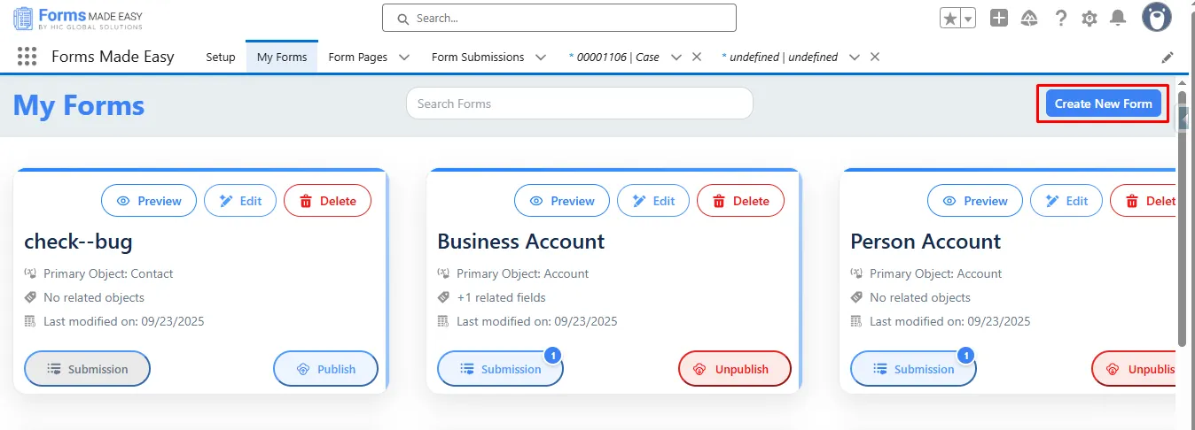 • Step 1: Go to the My Forms tab and click on the "Create New Form" button.
