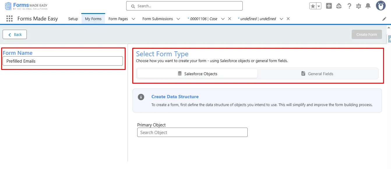 • Step 2: Enter the Form Name and select the Form Type “Salesforce Objects”.