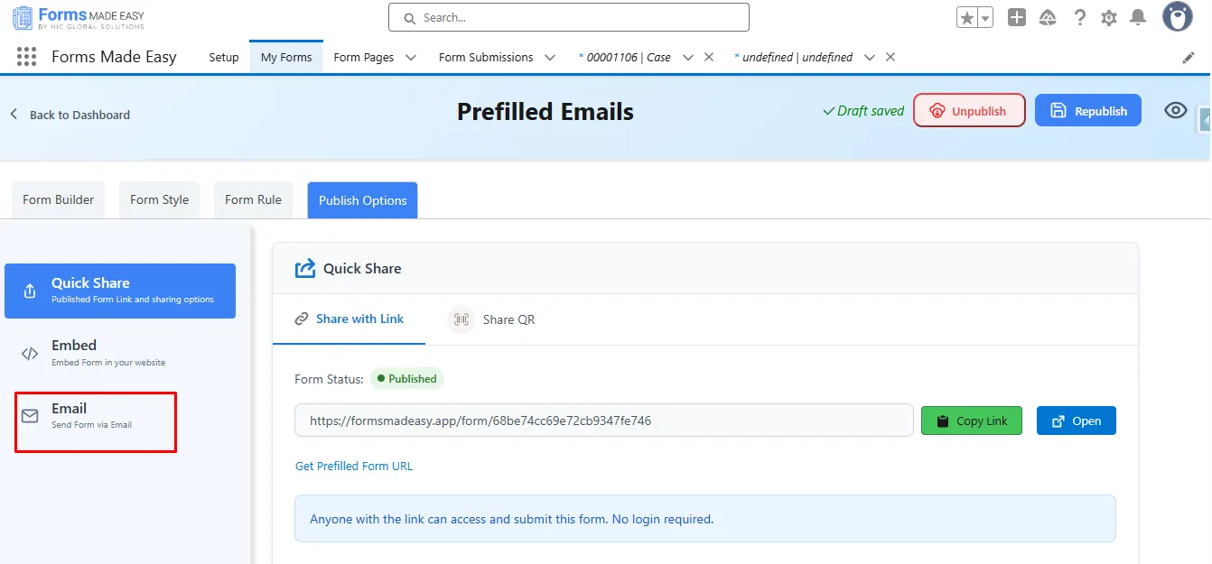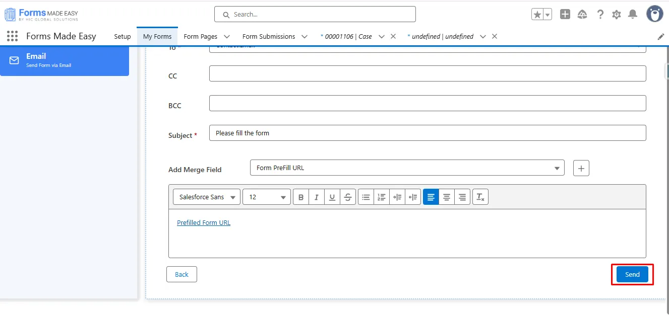Steps to Create the Prefilled Emails using Forms Made Easy :