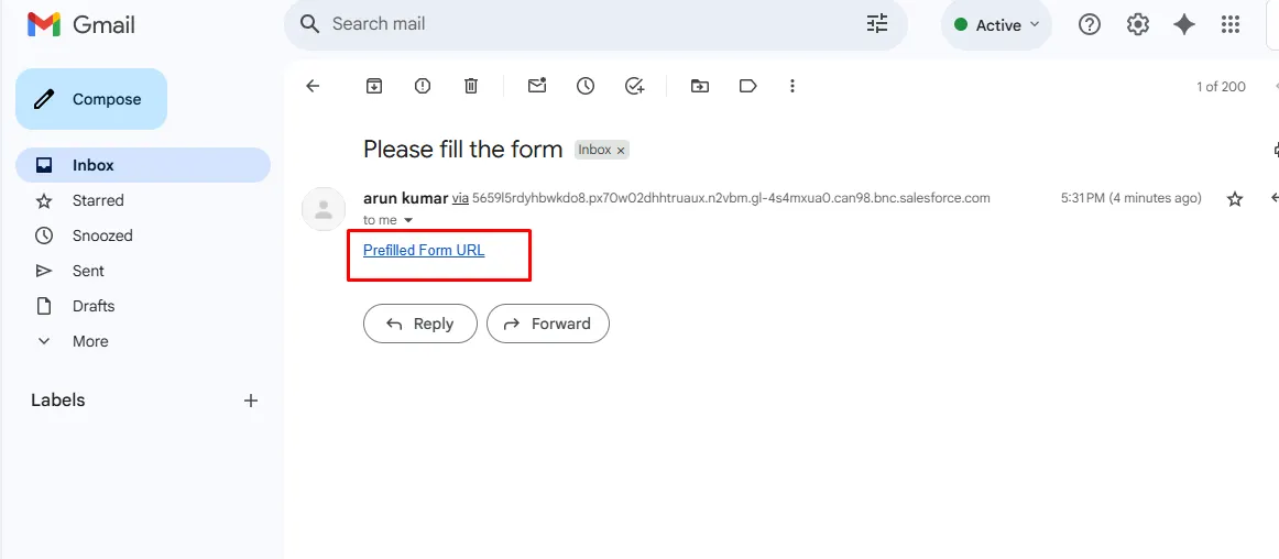 • Step 17: Check your email and click on the Prefilled Form URL.