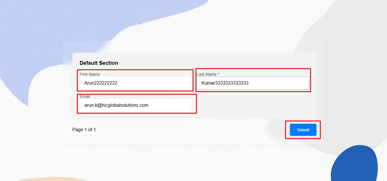 (for ex: I have update the first and last names and then click the "Submit" button.)