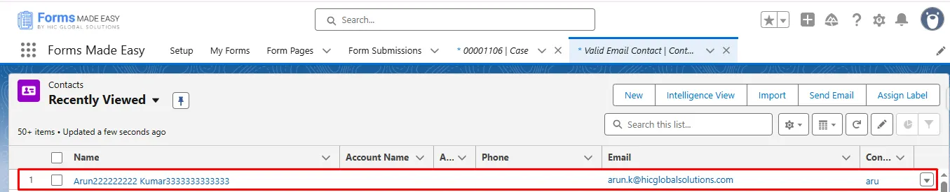 • Step 20: Now you will see that the Contact Record is updated in Salesforce.