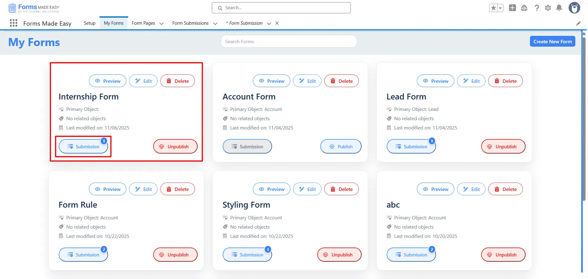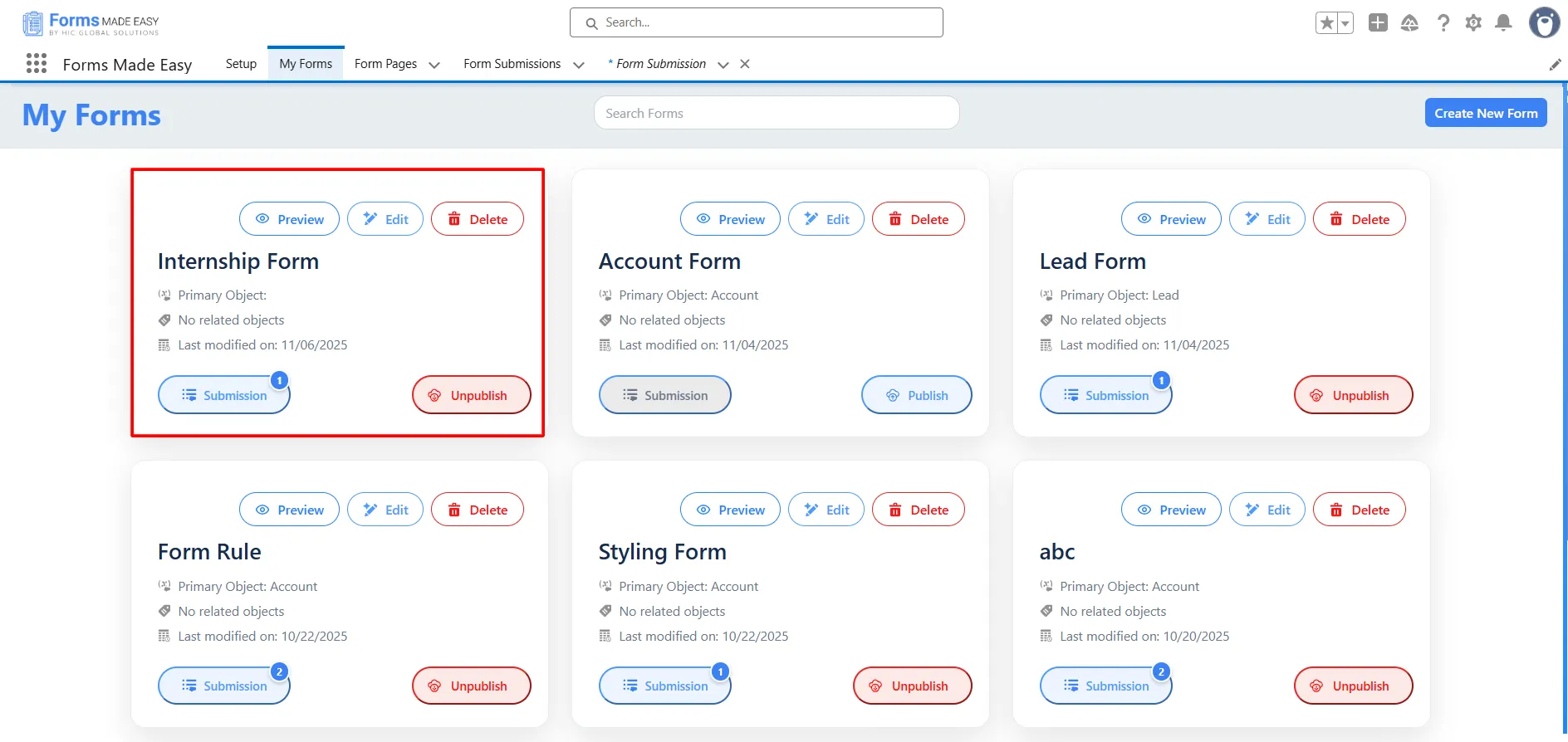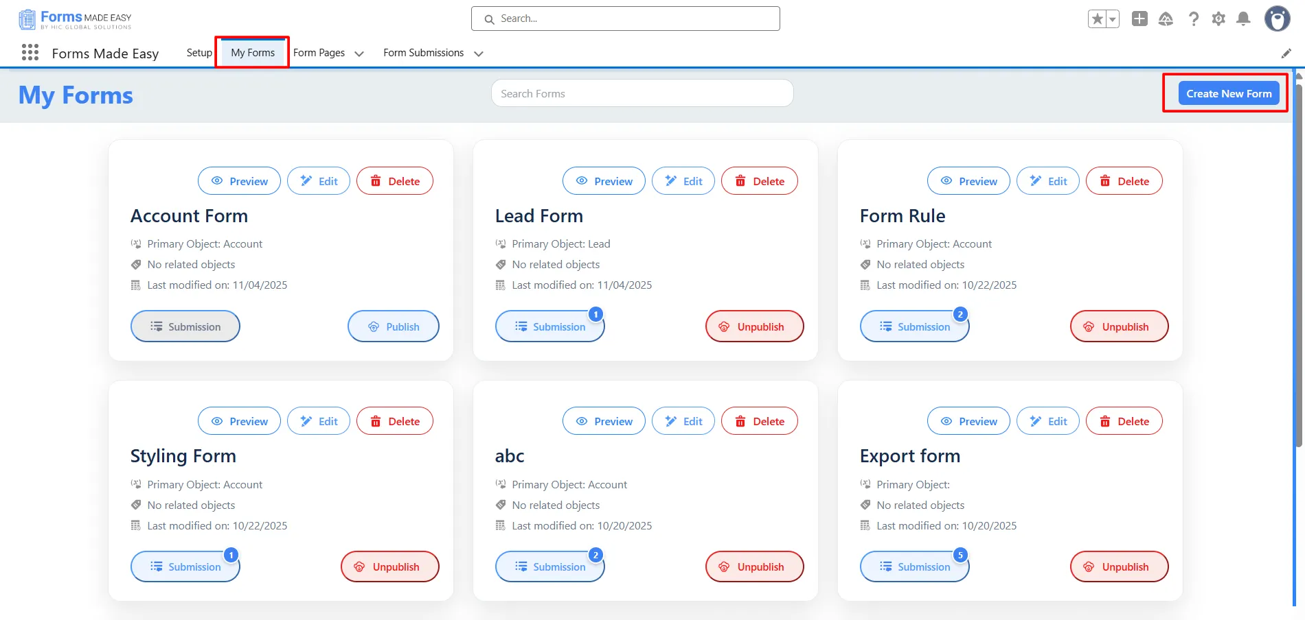 - Step 1:Go to the My Forms tab and click on the Create New Form button.