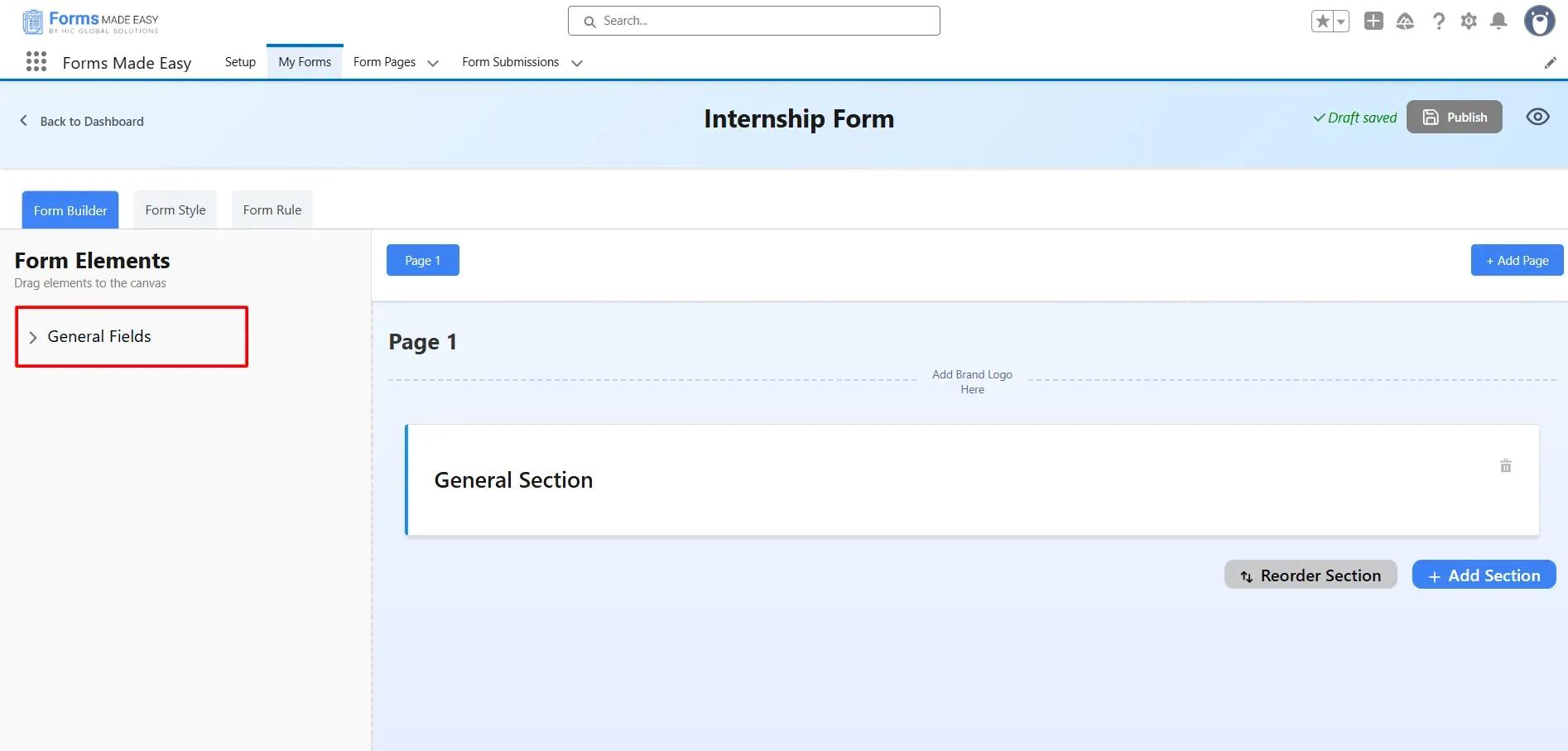 - Step 10: After dragging and dropping all the required fields and sections into your form, click on the Form Rule tab to open it and start configuring rules based on specific conditions.