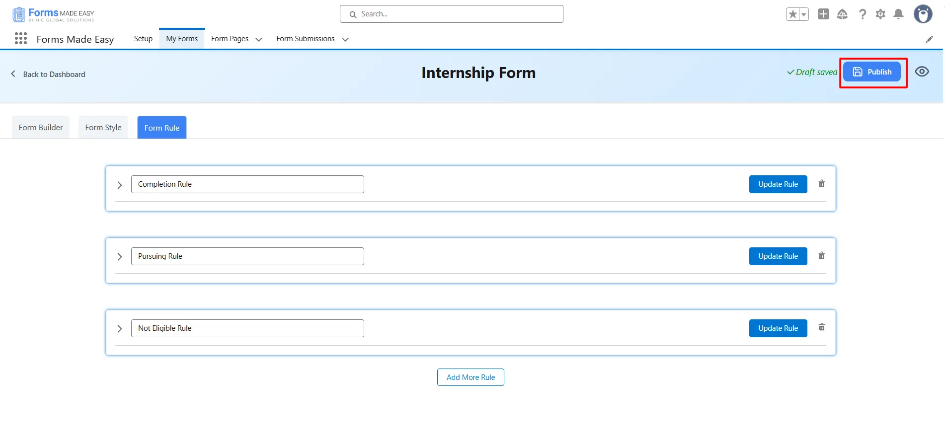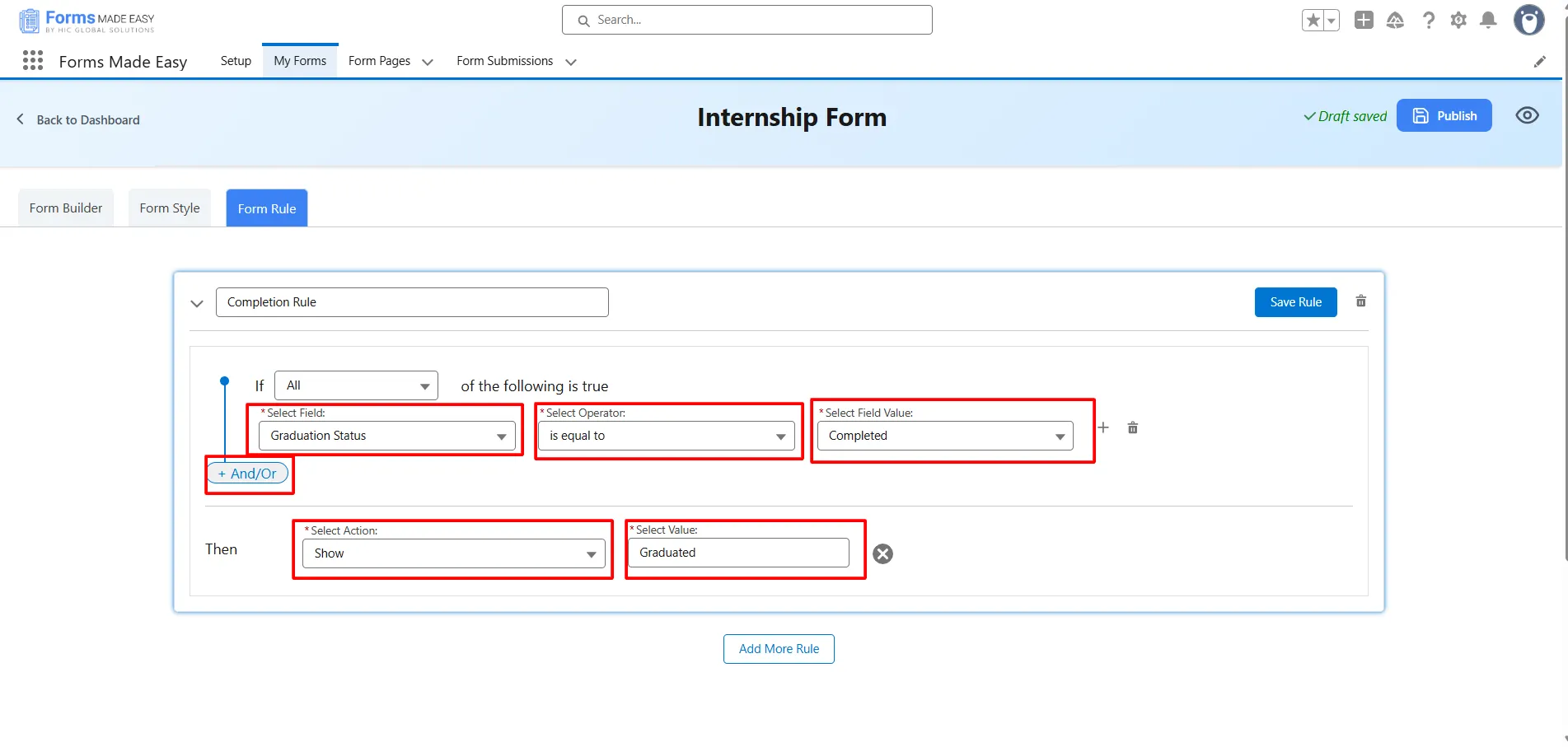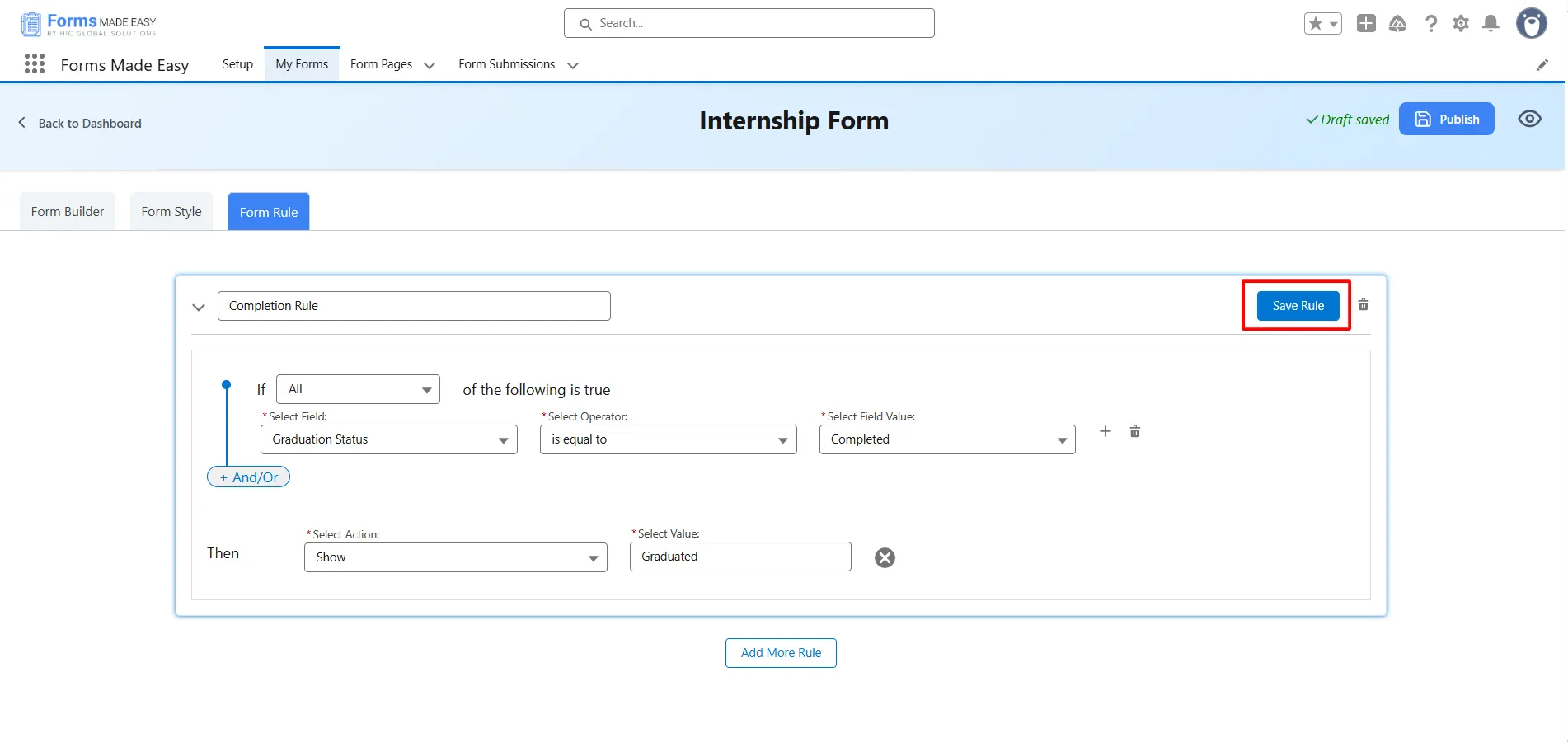 - Step 14: Click on the Add More Rule button to create and configure multiple rules within your form.