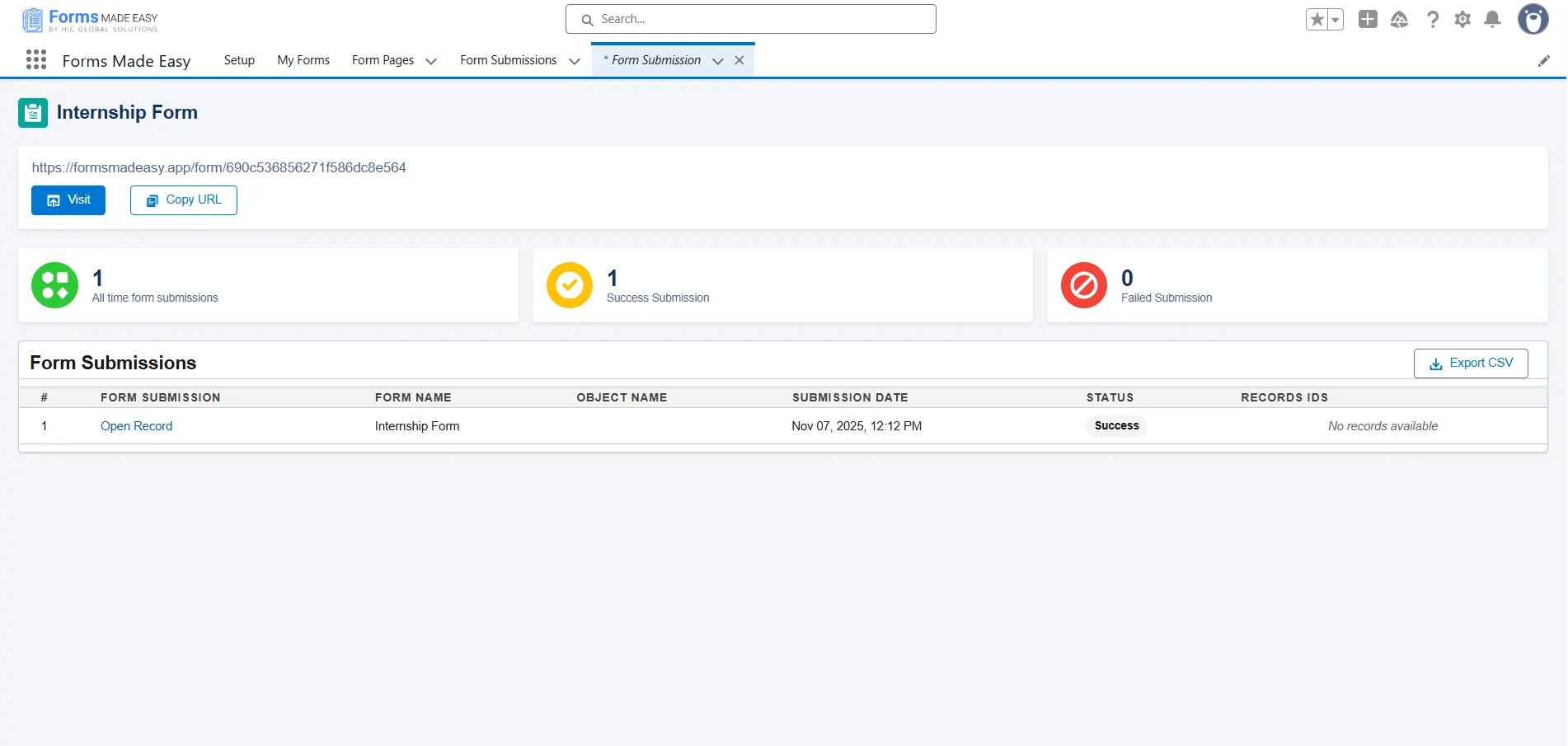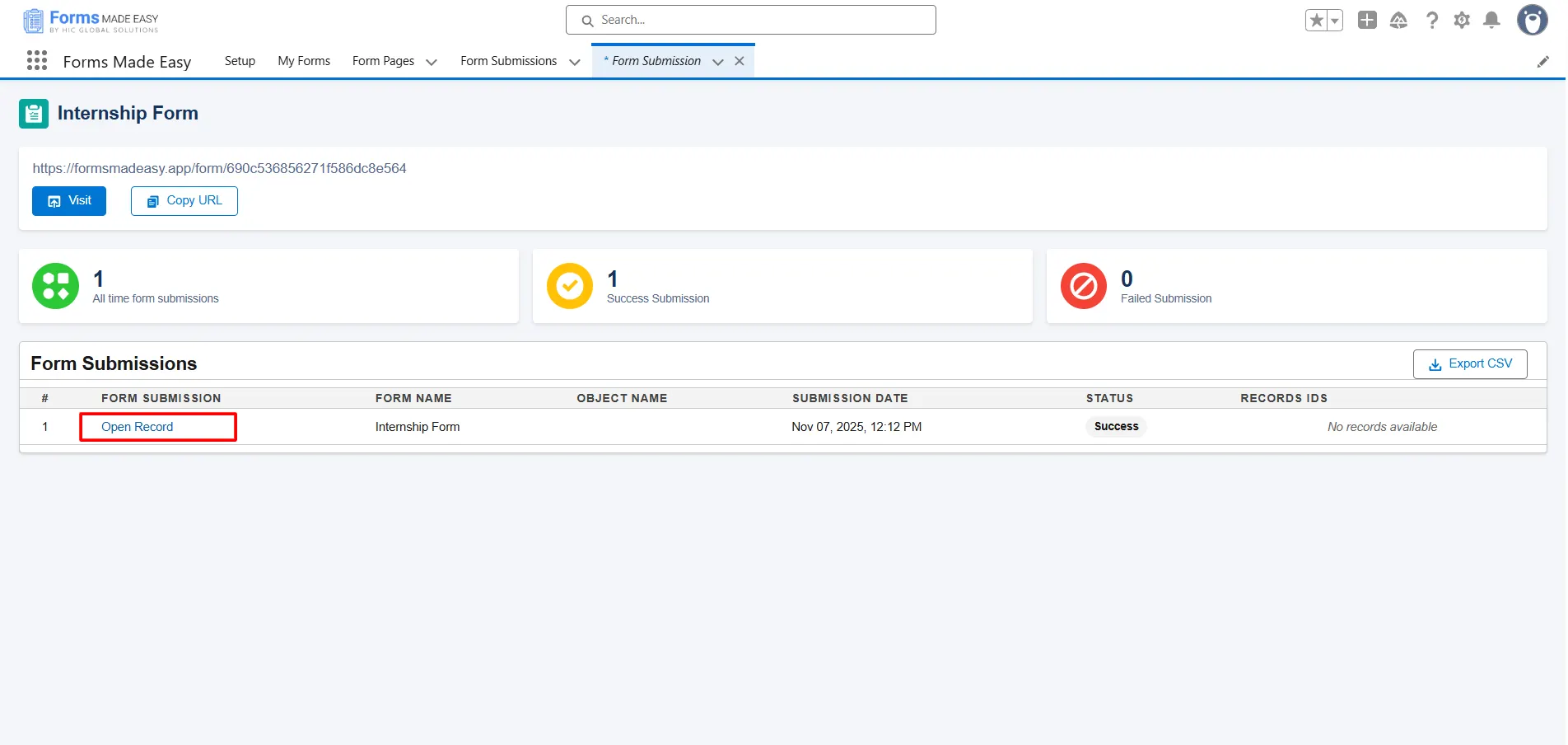 - Step 20: Click on the Open button to directly open the form in your web browser.