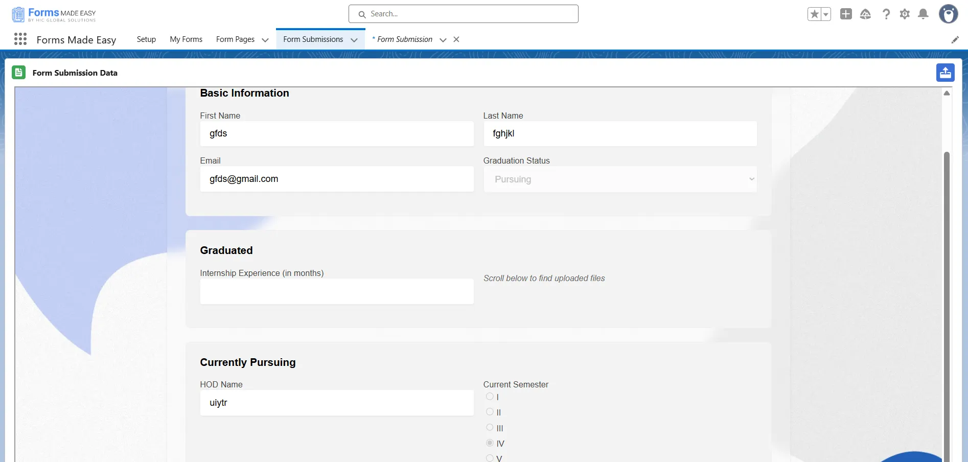 ( Note: In this case, we use the condition : If the Graduation Status is equal to Completed, then the Graduated Section will be populated.)
