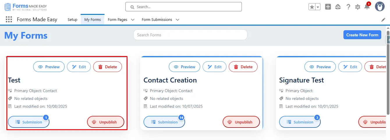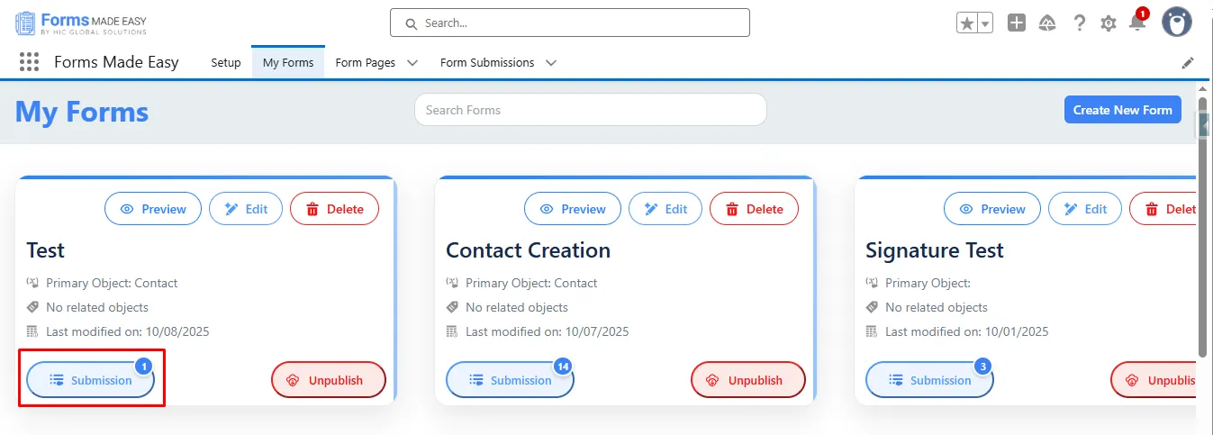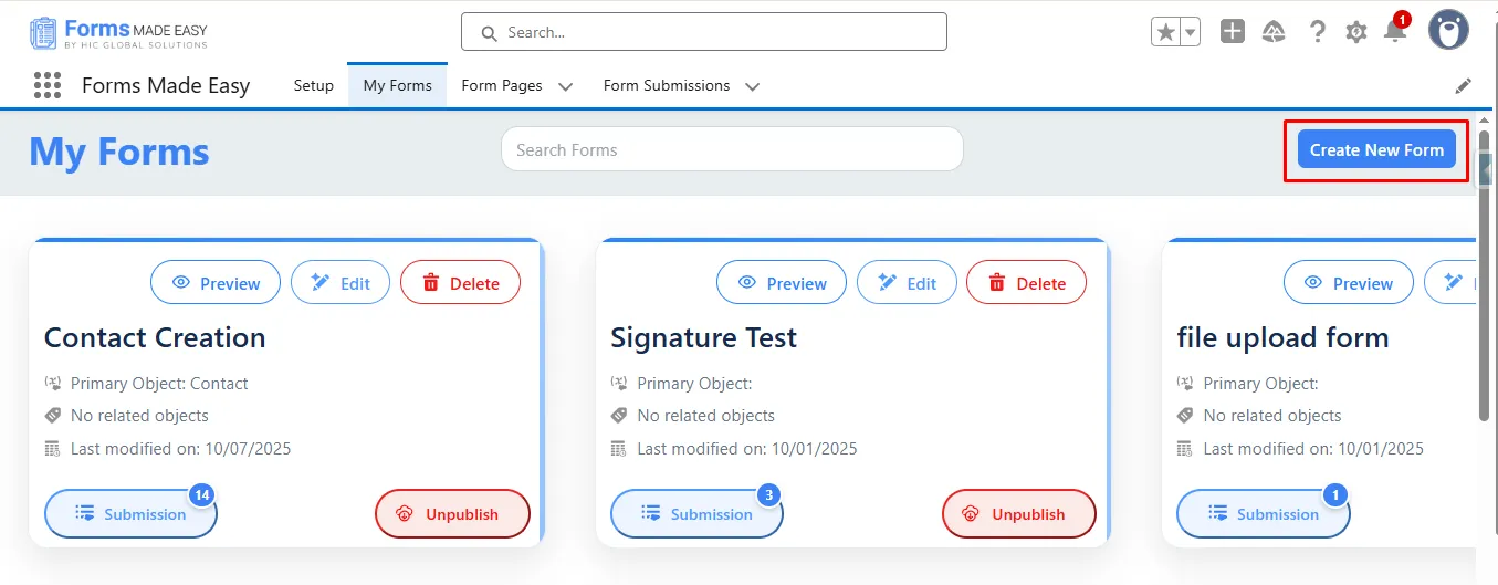- Step 1: Go to the My Forms tab and click on the "Create New Form" button.