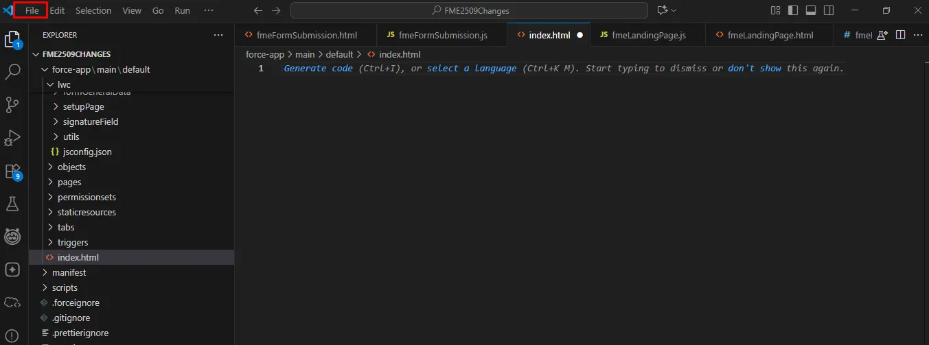 - Step 12: Now, open your preferred HTML editor to begin the embedding process. You can choose any online HTML editor that suits your needs, but in my case, I’ll be using VS Code. To get started, open VS Code and click on File in the top menu.