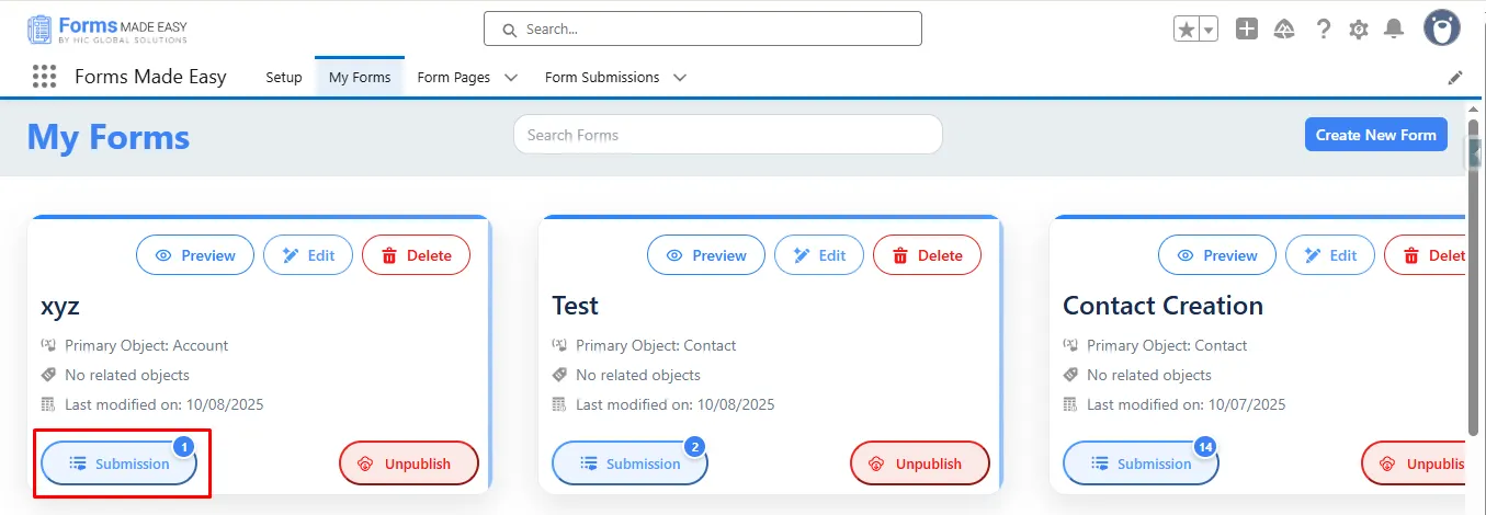 - Step 1: Go to the My Forms tab and click on the "Create New Form" button.