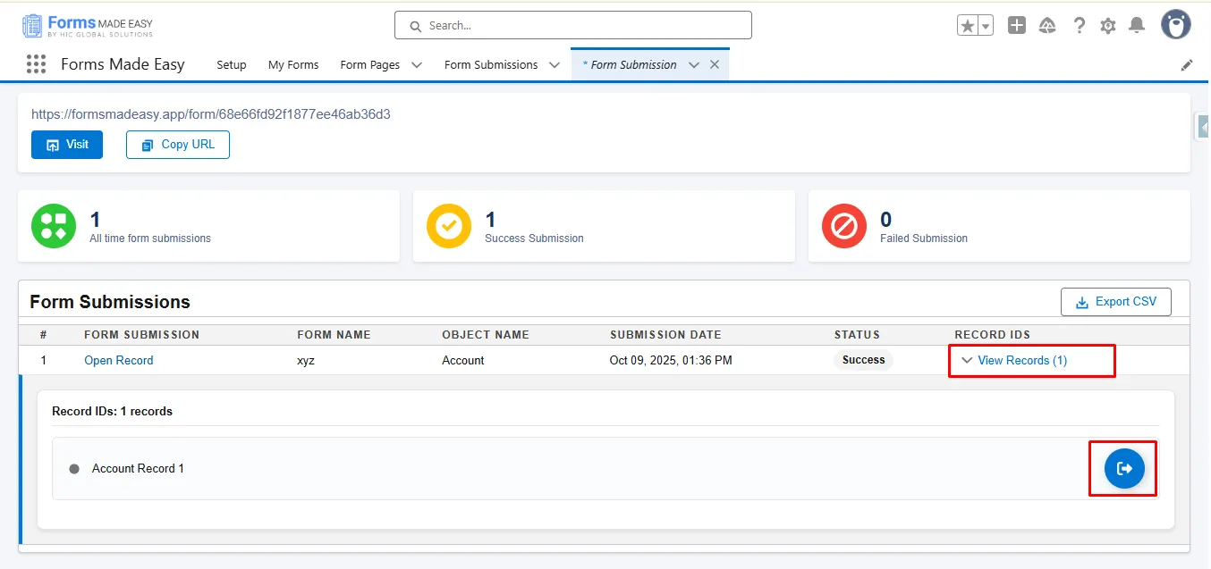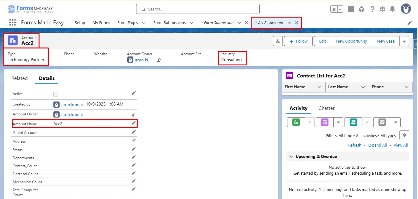 - Step 21: The submitted records will now appear under the Account object in Salesforce.