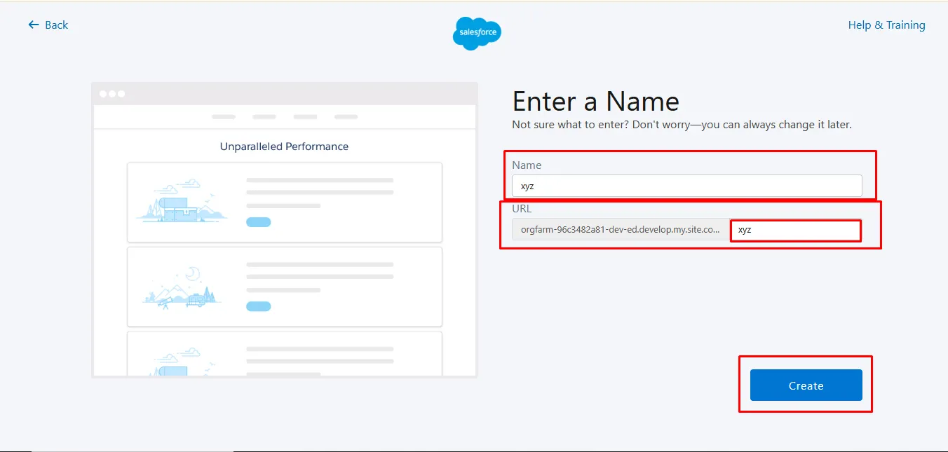 - Step 31: Enter the site Name and URL, then click the Create button.