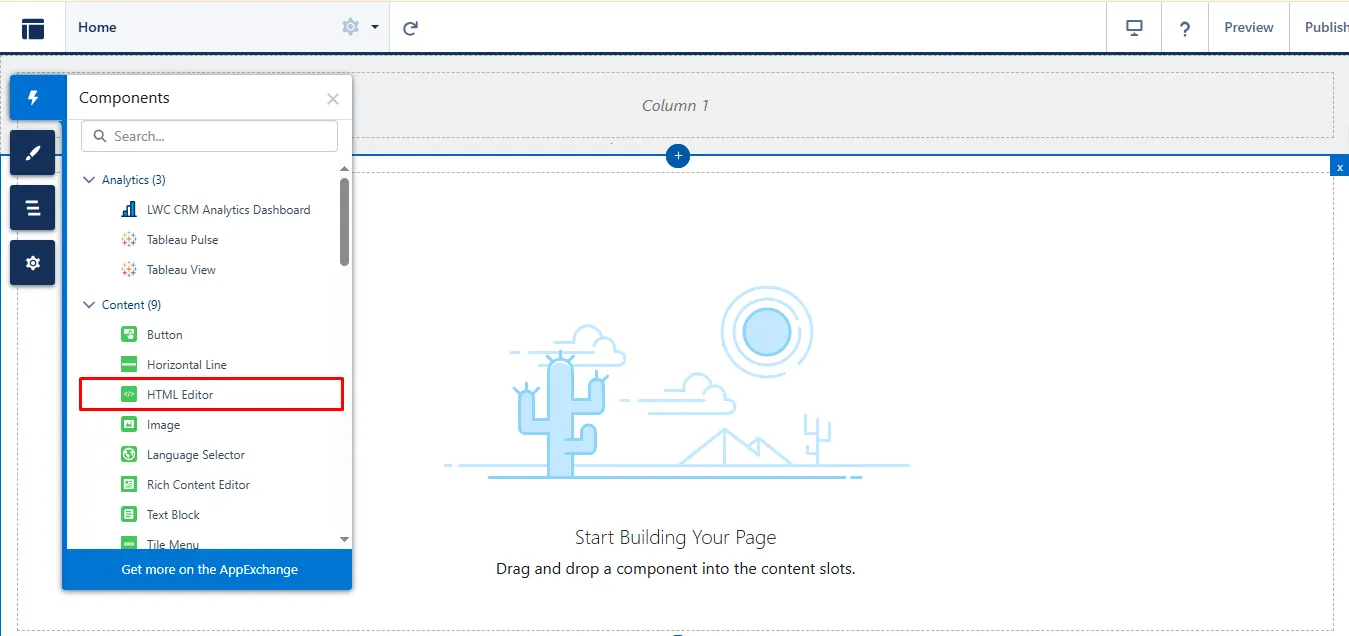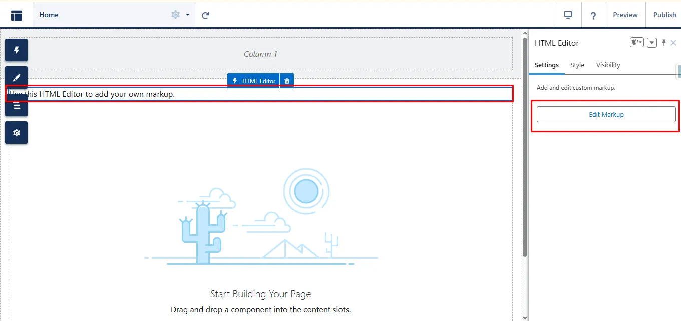 - Step 34: Click on the HTML Editor component, then drag and drop it onto your page where you want to add custom code.