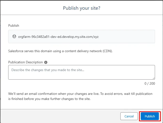 - Step 39: After publishing, you will receive an email with the subject ‘Site Published Successfully’. The email will also include the URL to access your live form.
