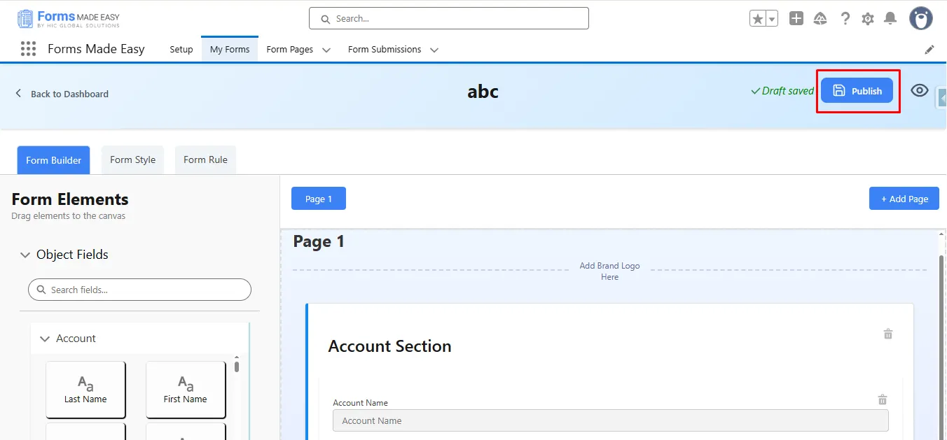 - Step 6: After all of that, you can publish the form by clicking the "Publish" button.