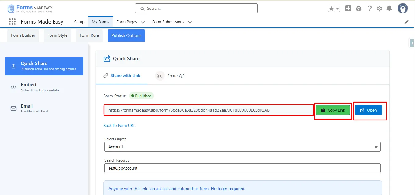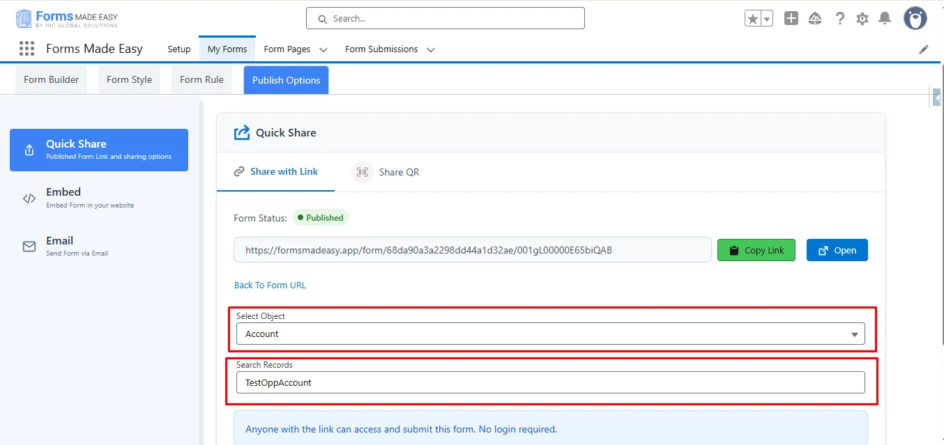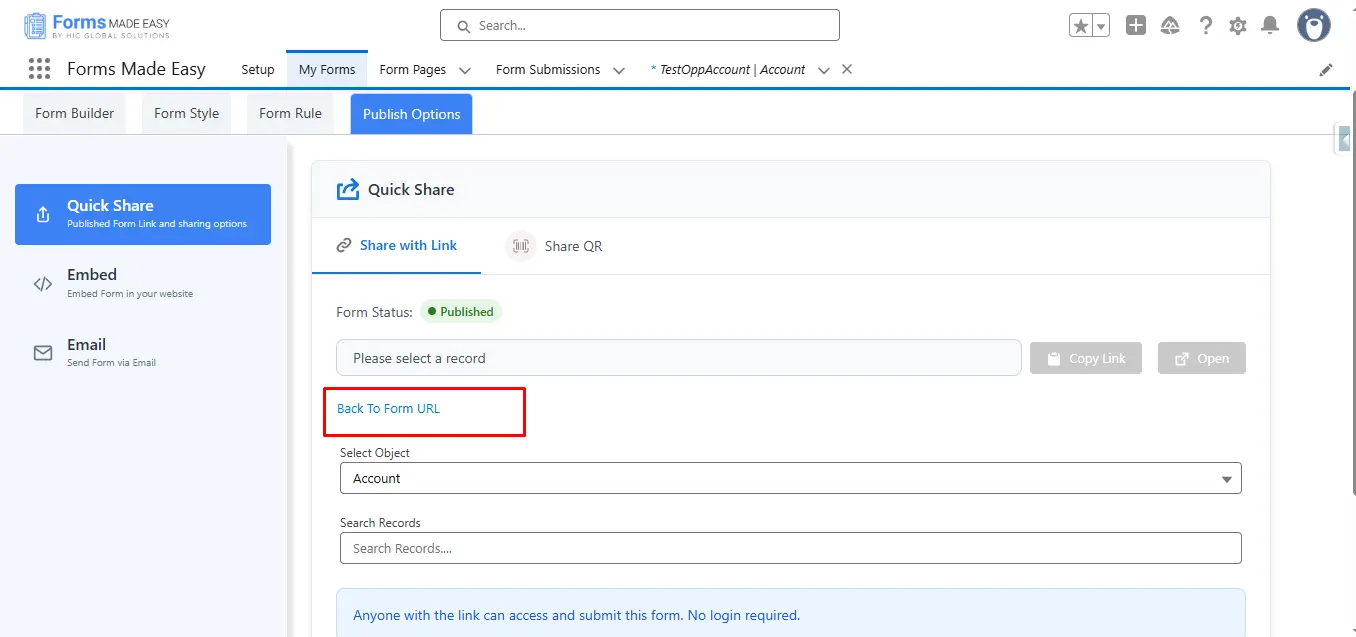 In this blog, we will walk through how to share a form for a specific record using the Quick Share options.