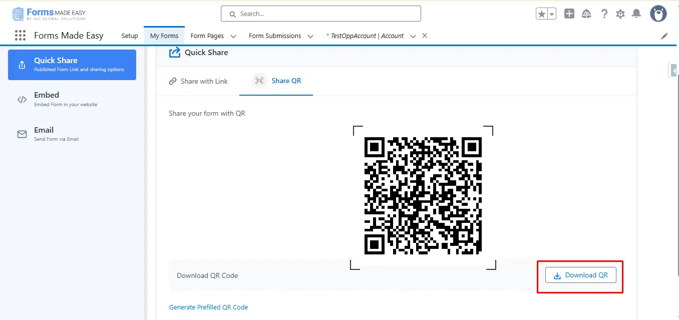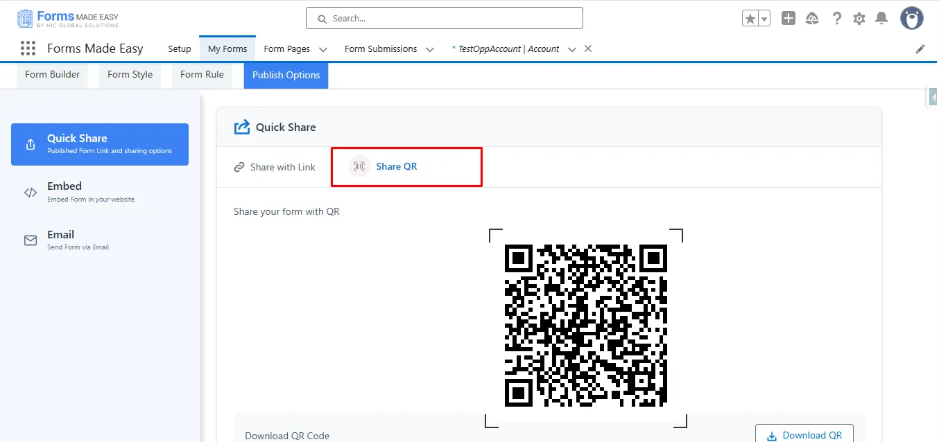- Step 22: Click on the Download QR button to download the QR code for the published form.