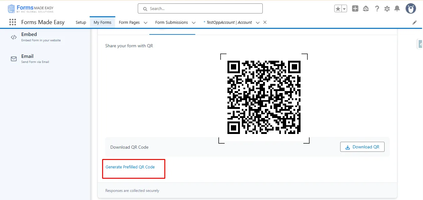 - Step 23: Click on Generate Prefilled QR Code to create a QR code with prefilled data for the selected record.