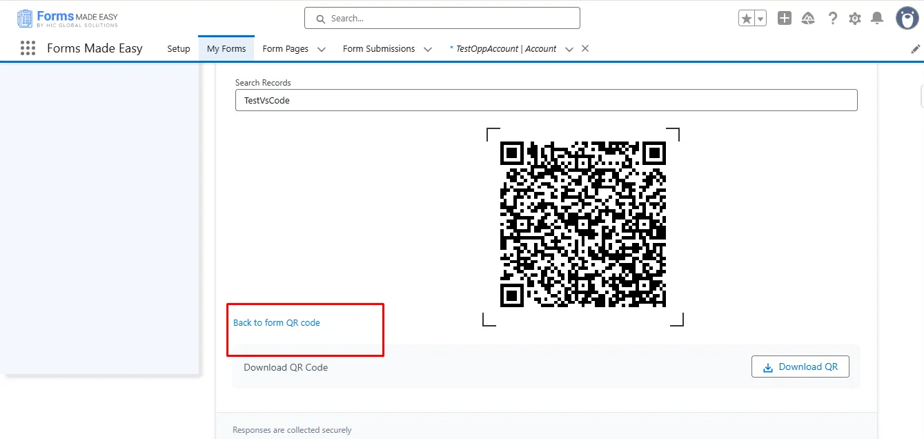 Step 26: Click on the Back to form QR Code to go to the form QR Code.